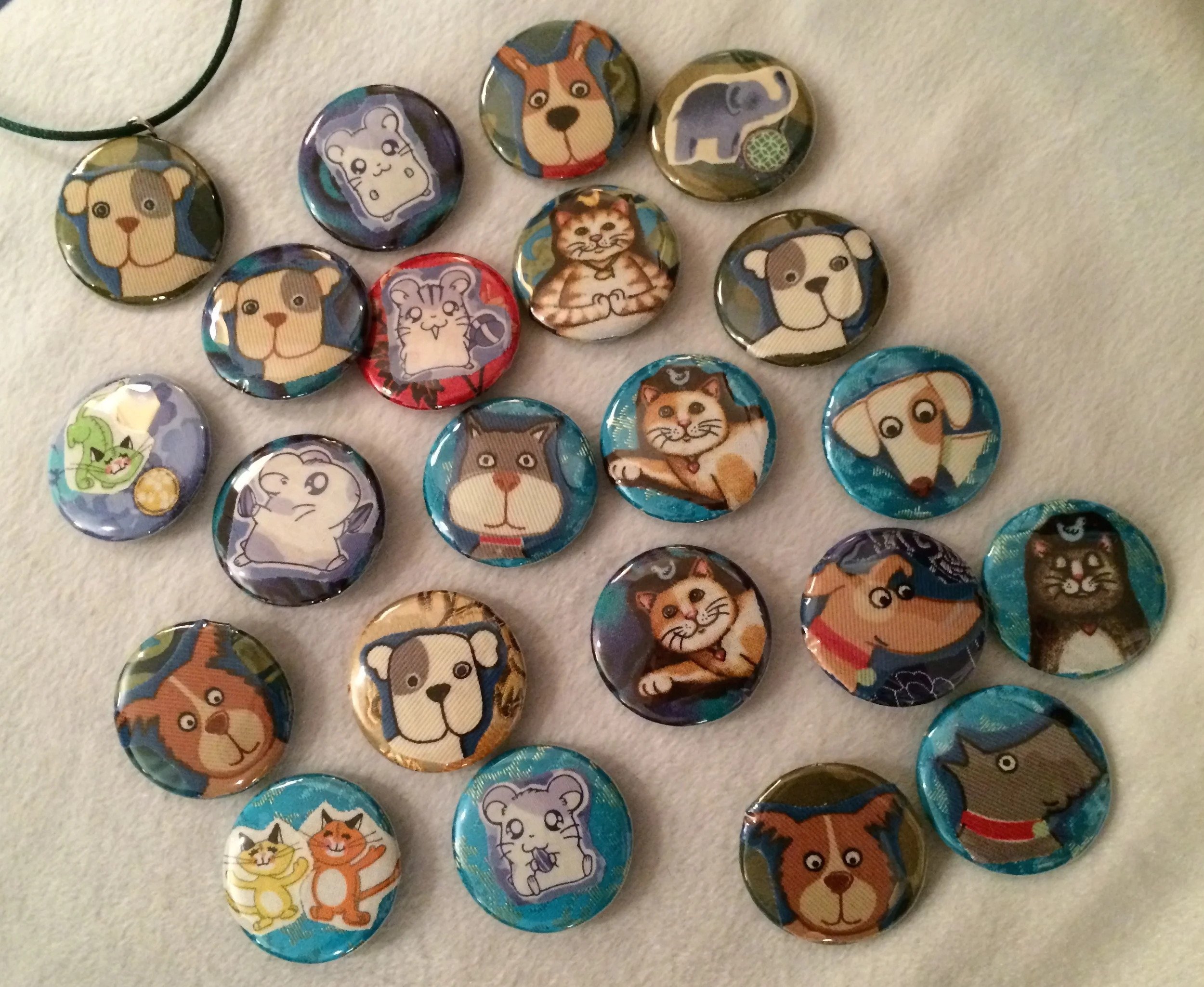 Badges $30, Magnets $38, Key rings/Necklaces $45 EACH